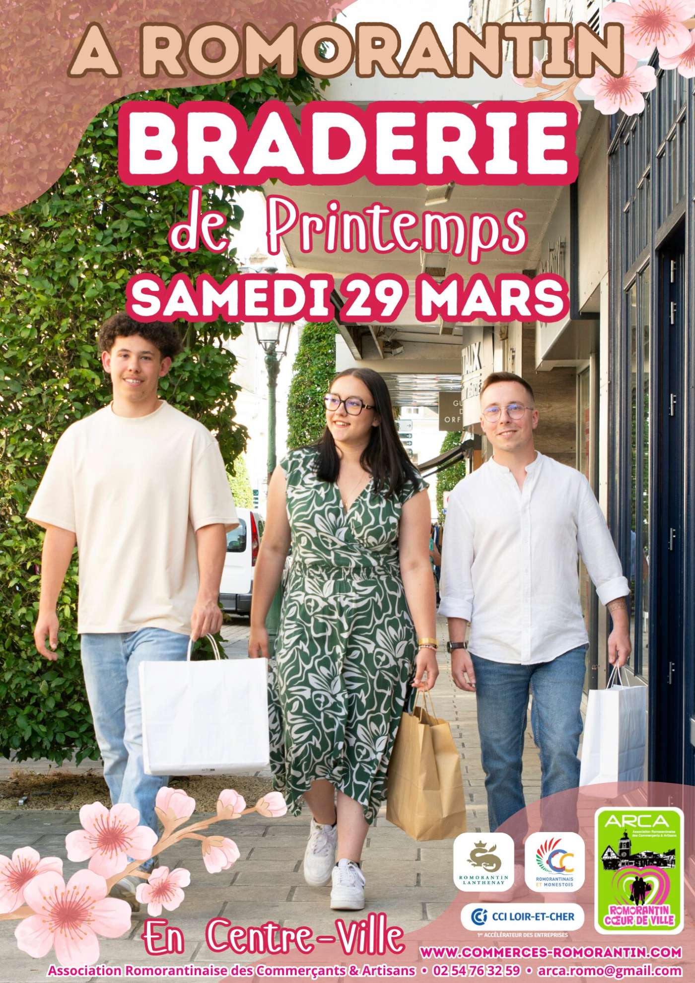 "L'Arca vous donne rendez-vous dans le centre-ville de Romorantin pour une braderie de printemps ! Avec des offres exceptionnelles chez vos commerçants locaux et la présence de nombreux exposants ! Profitez également de cette journée pour faire une pause gourmande chez les restaurateurs et métiers de bouche du centre-ville. Le stationnement et la circulation des véhicules seront interdits dans certaines rues du centre-ville de 6h30 à 21h."