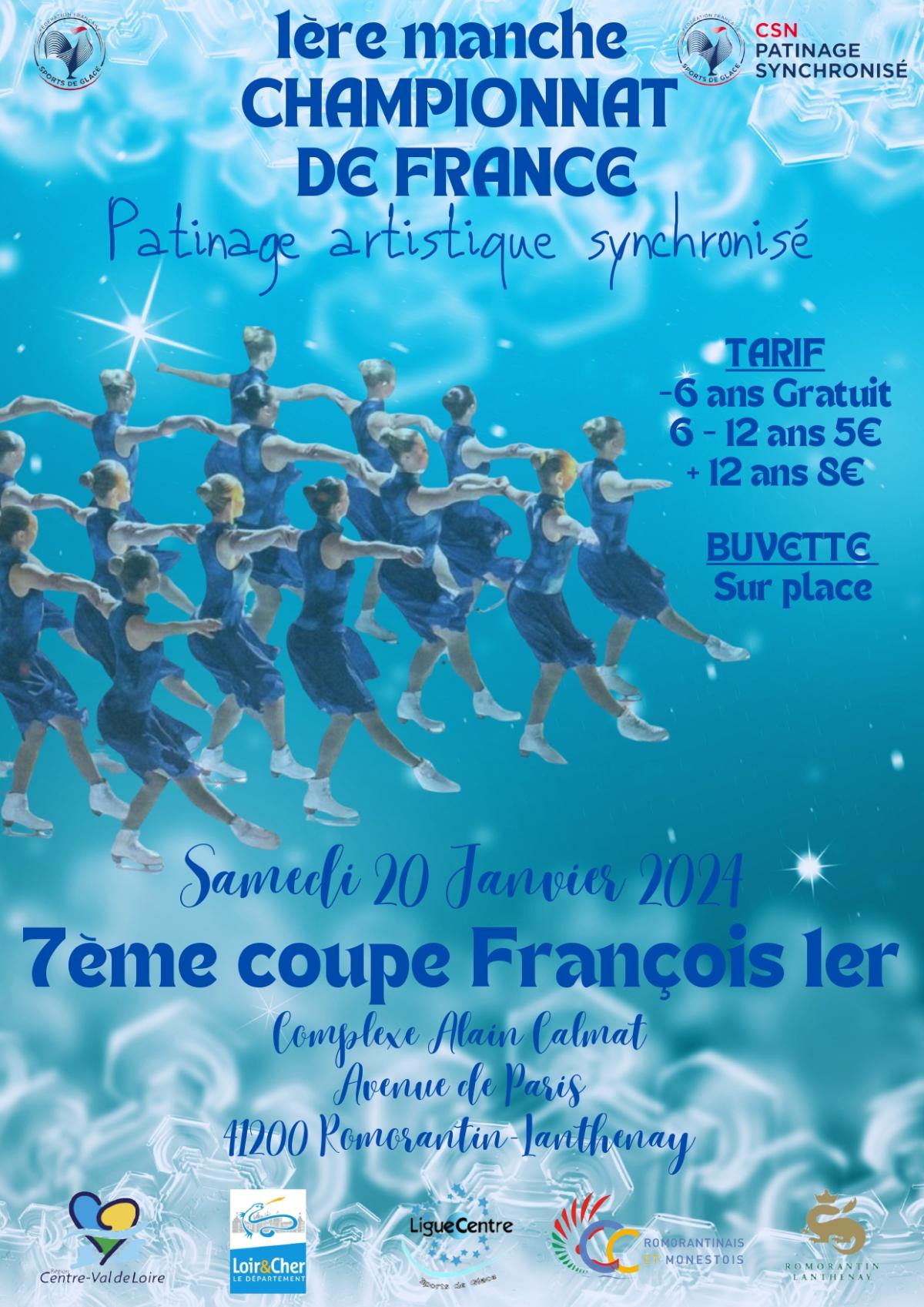 1 ère manche du Championnat de France de Patinage Artistique Synchronisé au Complexe Alain Calmat 7ème Coupe François 1er Entraînement dès 9h, début de la compétition 13h