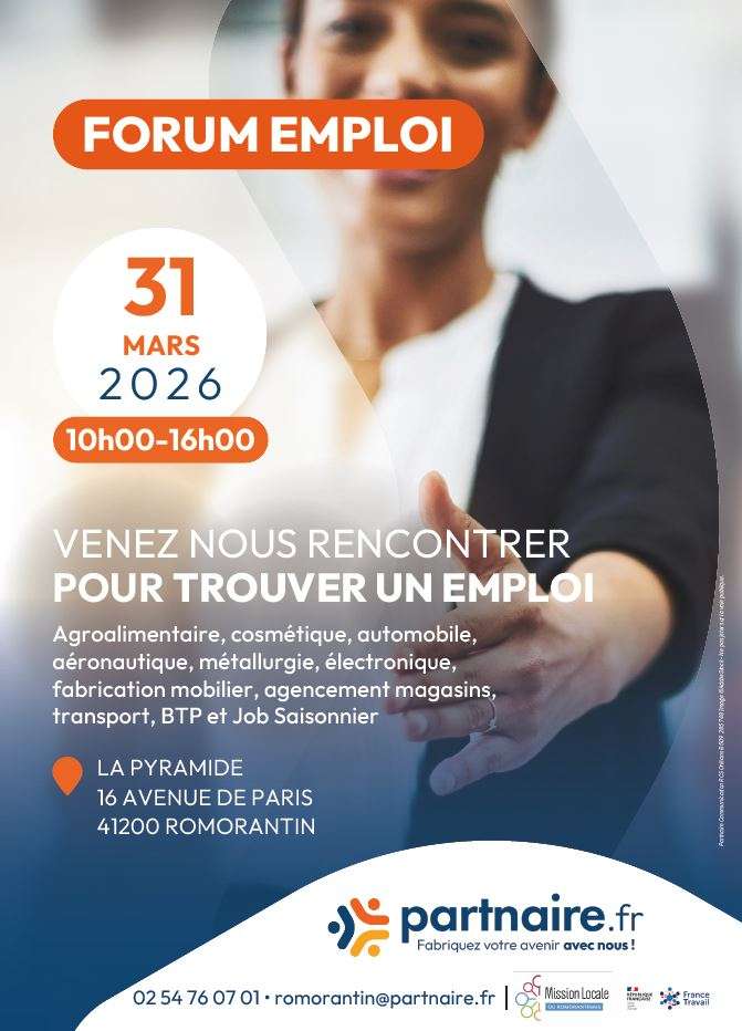 Renseignements : 02 54 76 07 01 - romorantin@partnaire.fr