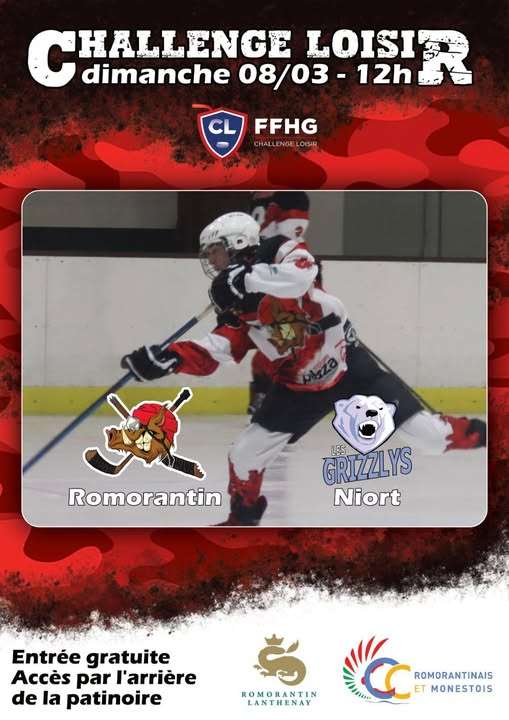 Les Sangliers de Romorantin entrent en glace pour un match du Challenge Loisir et reçoivent les Grizzlys de Niort. 12h. Entrée gratuite, accès arrière de la patinoire.