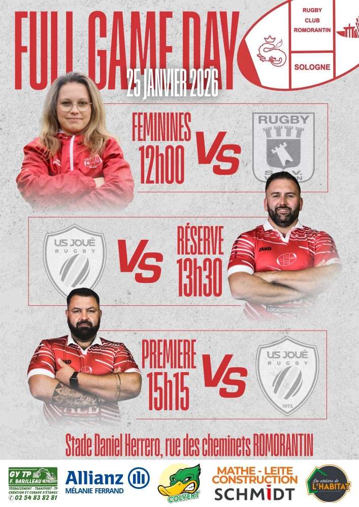 RUGBY – Championnat Régional 1 Masculin. Rugby Club Romorantin Sologne reçoit US Joué les Tours. Stade Herrero. Féminines 12h ; réserve : 13h30 ; équipe 1ère à 15h15.