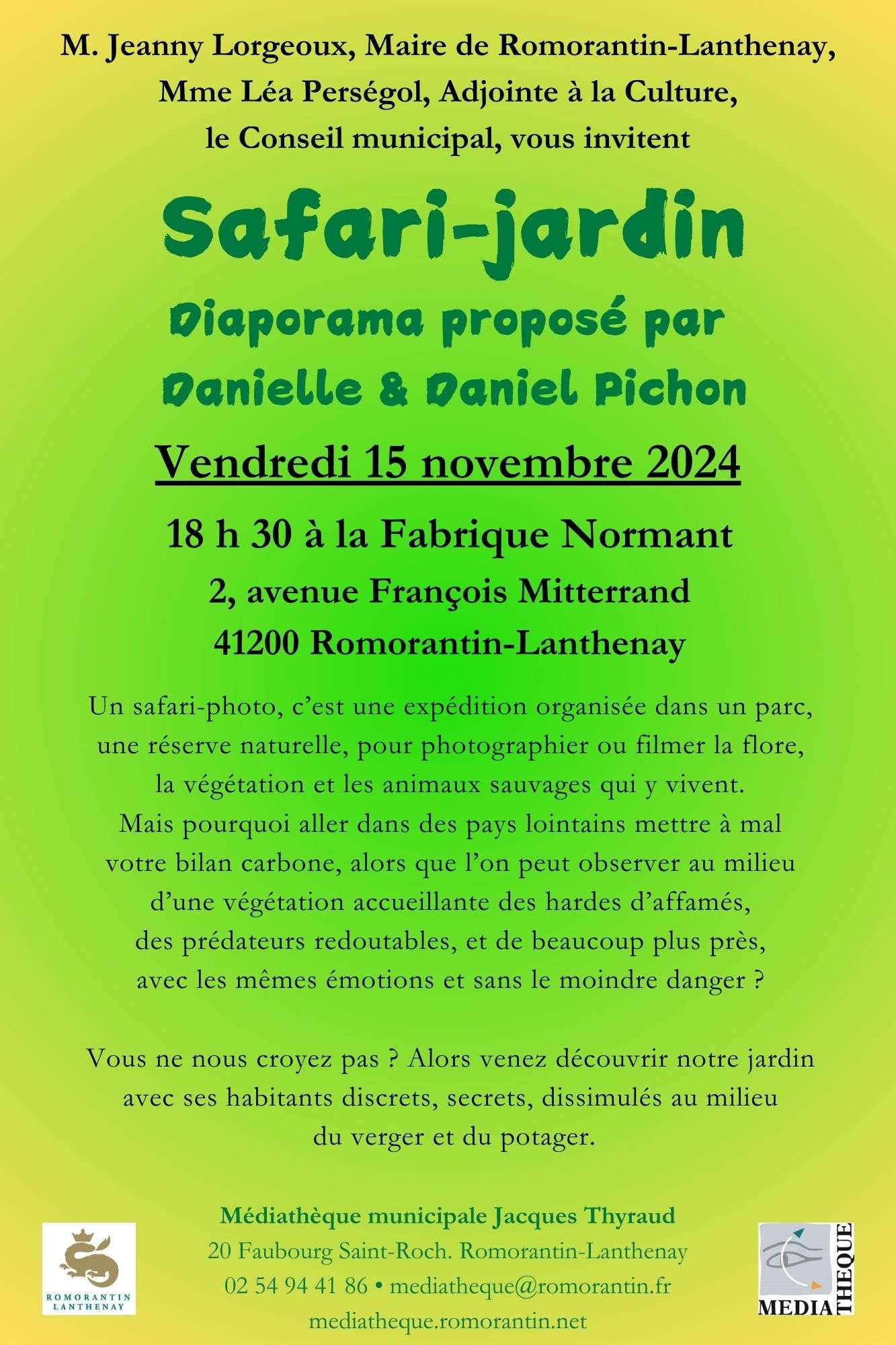 Un safari-photo, c’est une expédition organisée dans un parc, une réserve naturelle, pour photographier ou filmer la flore, la végétation et les animaux sauvages qui y vivent. Mais pourquoi aller dans des pays lointains mettre à mal votre bilan carbone, alors que l’on peut observer au milieu d’une végétation accueillante des hardes d’affamés, des prédateurs redoutables, et de beaucoup plus près, avec les mêmes émotions et sans le moindre danger ? Vous ne nous croyez pas ? Alors venez découvrir notre jardin avec ses habitants discrets, secrets, dissimulés au milieu du verger et du potager.