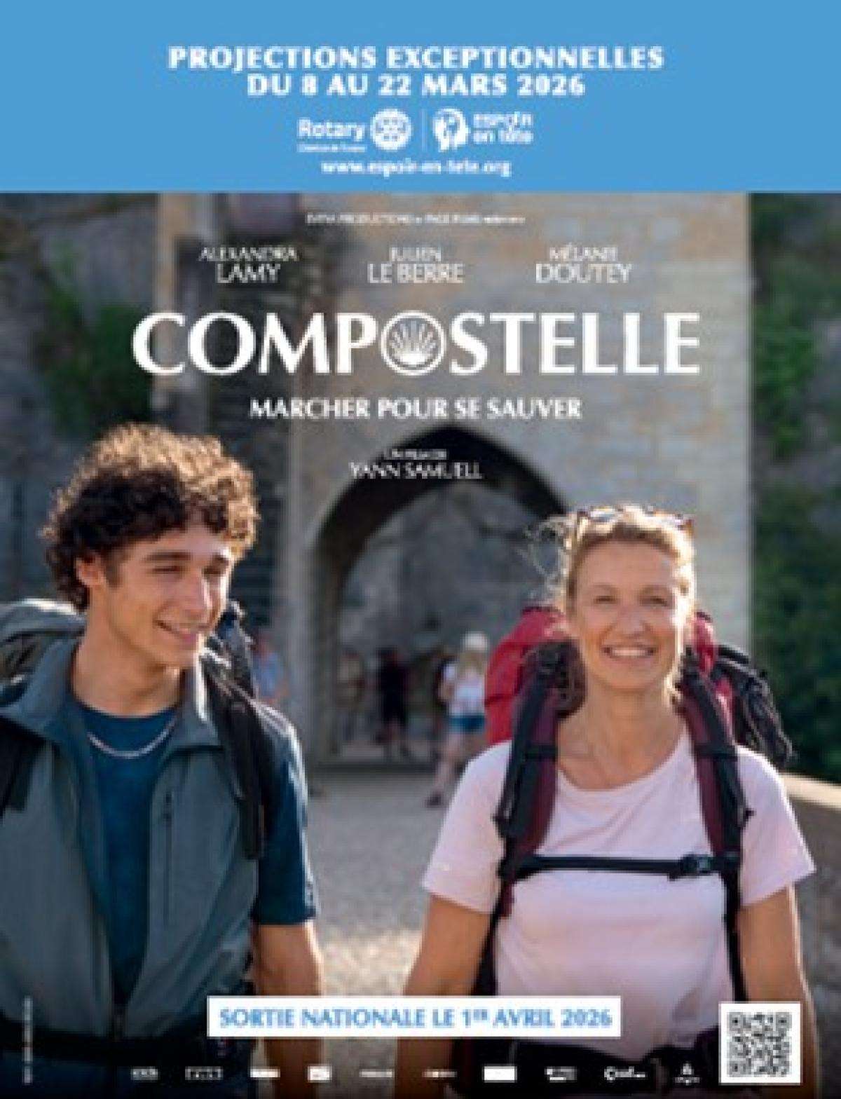 Le Rotary organise une projection en avant-première du film COMPOSTELLE de Yann Samuell avec Alexandra Lamy et Julien Le Berre. Véritable ode à la résilience, à la fraternité et à l’espoir d’un nouveau départ, d’un adolescent en pleine rupture sociale. Avant la projection, témoignages de romorantinais qui ont marché sur le chemin de Compostelle, et à l’issue, verre de l’amitié.