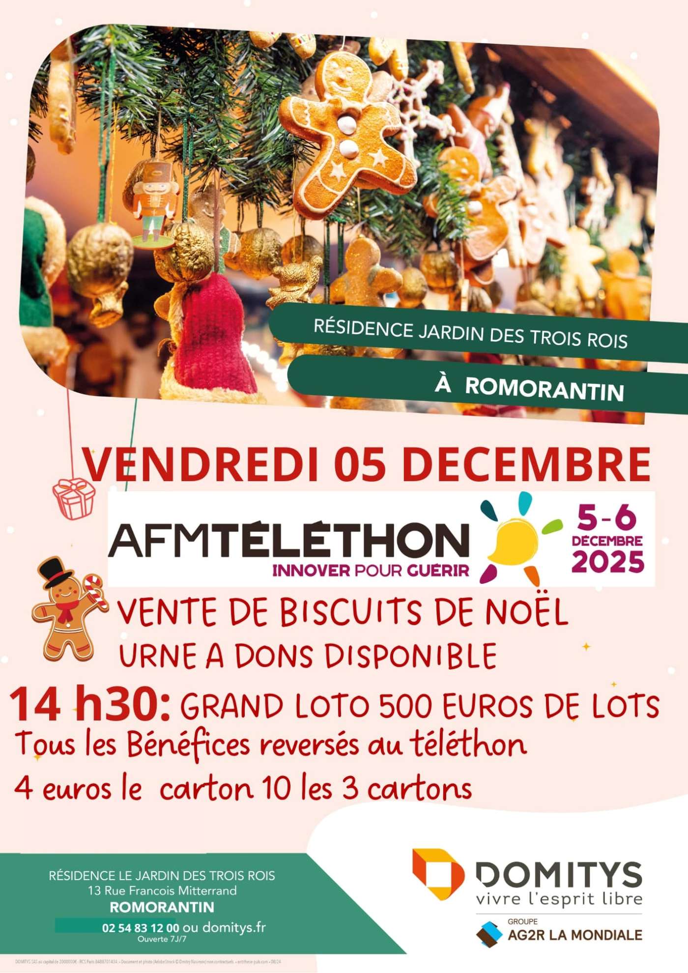 vente de biscuits de Noël, urne à dons, grand loto à 14h30. tous les bénéfices reversés à l'AFM Téléthon