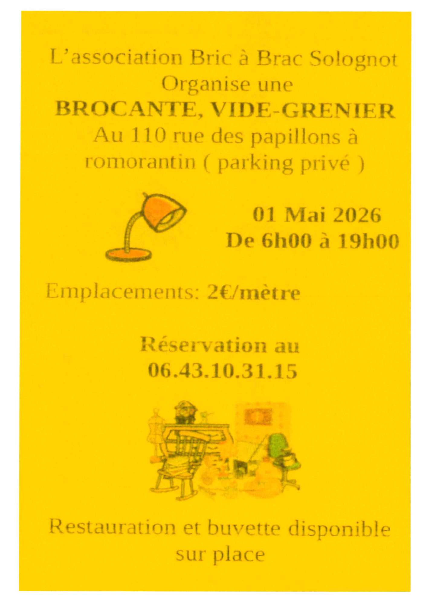vide-greniers/Brocante organisé par l'association Bric à Brac Solognot